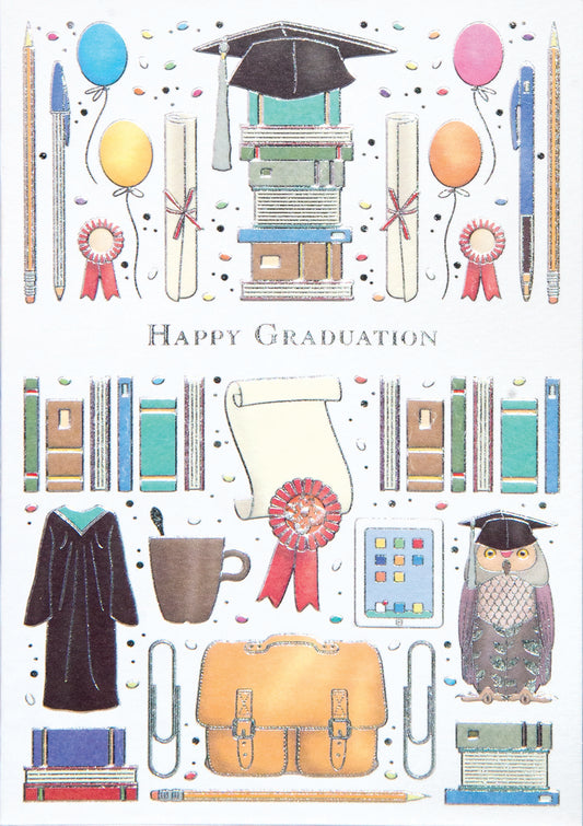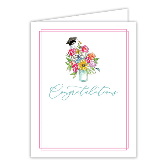 Congratulations Floral Arrangement with Cap and Diploma Greeting Card