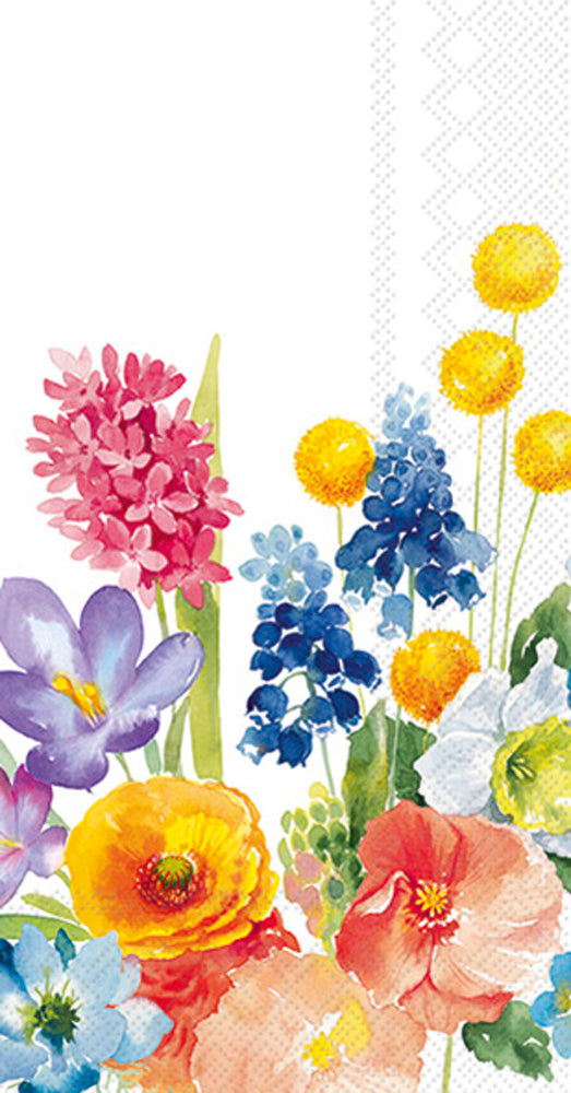 These guest towels burst with lively colors and depict a charming assortment of blossoms.