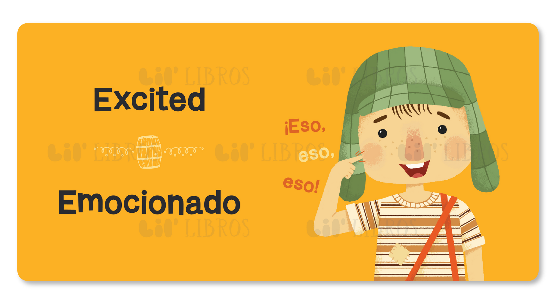 In theme with the hilarious sitcom "El Chavo del Ocho," introduce your little ones to a collection of emotional expressions in both English and Spanish! Inspired by the internationally acclaimed sitcom "El Chavo del Ocho," this bilingual board book will introduce little ones to their range of emotions alongside the sitcom's over-the-top comedic cast. From the feelings of calmness to excitement, this colorful guide of emotions in English and Spanish is a nostalgic twist that you don't want to miss.