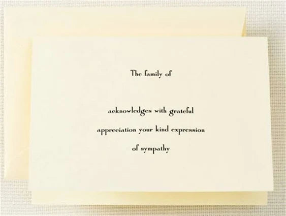 Recognize the kindness of relatives and friends with this note. The front includes a thoughtful message, while the inside is blank awaiting your words. Matching envelopes included.