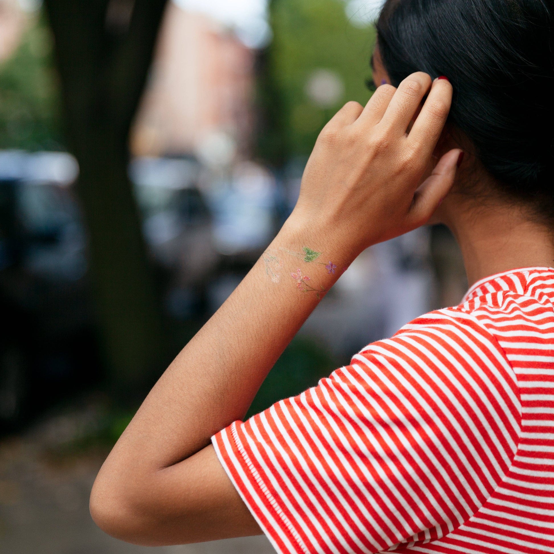These tiny Tattly, by tattoo artist Jess Chen, were hand-picked from her Petite Garden Sheet.†Treasure them now; unlike her real designs, these are only temporary. Quality, non-toxic and made in the USA. Fake tattoos by real artists! Tattly Pairs include two of each design packaged in a polybag and sealed with a branded topper that's ready to hang. Topper is 2" tall and these tattoos vary in size.