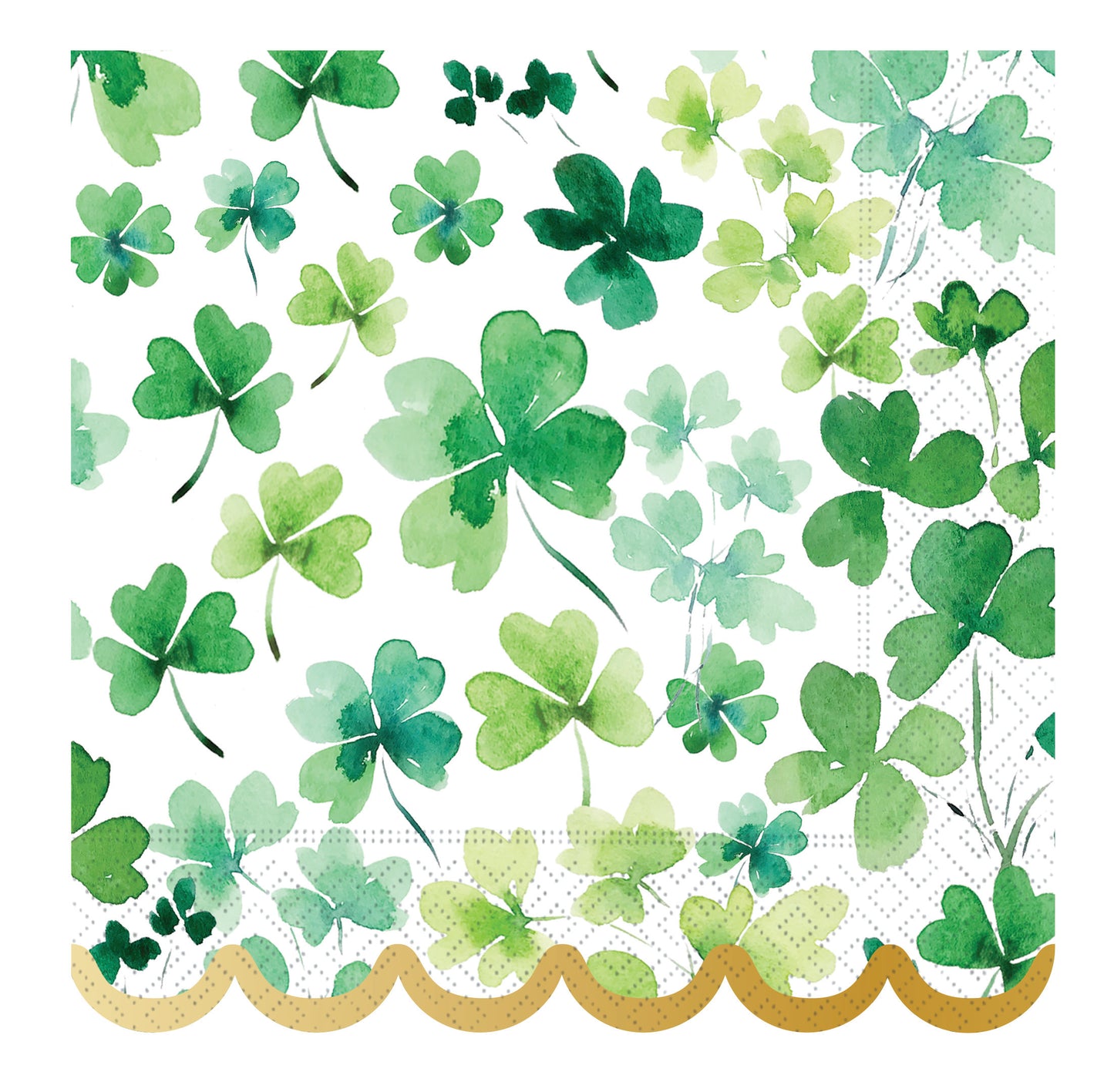 Add a festive flair to your St. Patrick’s Day celebration with these charming Luncheon Napkins! Featuring a lively watercolor shamrock design in varying shades of green, these napkins bring a touch of Irish luck to your table. The gold scalloped edges add a hint of elegance, making them perfect for parties, dinners, or casual gatherings. Both stylish and practical, they’re ideal for keeping your celebration tidy and spirited!
